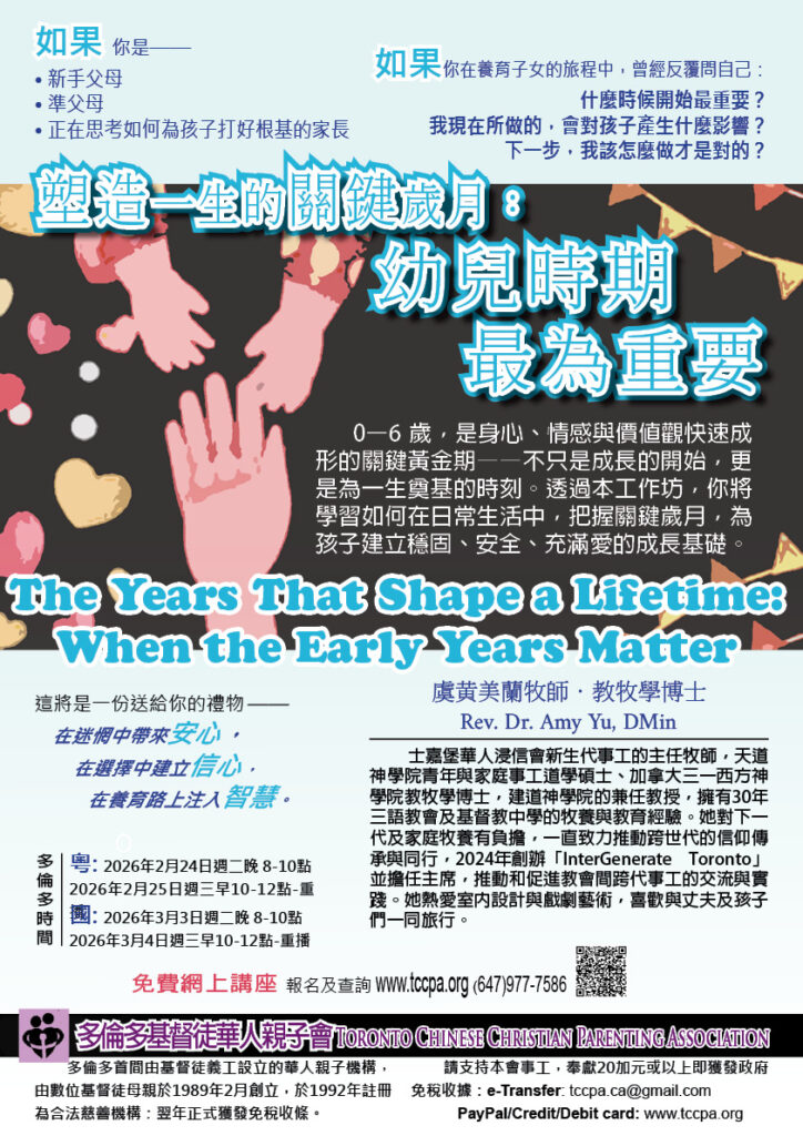 孩子的 0–6 歲,是身心、情感與價值觀快速成形的關鍵黃金期。這不只是成長的開始,更是為一生奠基的時刻。透過本工作坊,你將學習如何在日常生活中,把握關鍵歲月,為孩子建立穩固、安全、充滿愛的成長基礎。